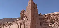 The towns of Tafeghaghte,[68] Adassil and Imlil, as well as nearby villages surrounding Mount Toubkal were destroyed or severely damaged.[69][70] An estimated 200 homes were destroyed in Ijoukak alone[71] and between 80 and 100 residents, around half of its population, were killed.[72] In Tafeghaghte, a village of 200 residents, 90 died and many remained missing.[53] In Adassil, 32 students from the same school were killed.[73] Outside Agadir, in the villages of Taqi and Tadrart, many homes were destroyed.[74] At least 70 people died in the village of Imi N'Tala.[75] In the city of Taroudant, almost 200 people were killed.[76] Several old or historic districts in the city were badly damaged.[77] Isolated villages in the Ouirgane Valley still had no electrical and telecommunication services two days after the earthquake,[78] while more than 30 people died in the main village.[79] In the village of Douzrou, roughly 100 residents died.[80] The condition in Tinzert was described as "one giant pile of rubble";[81] at least 22 deaths occurred.[82] Moroccan television reported that more than "18,000 families" had been affected in Al-Haouz alone.[29] Some residents accused authorities of preventing them from renovating their houses, which were predominantly built with mud bricks, with cement, in order to preserve their historic value and attract tourists.[83]