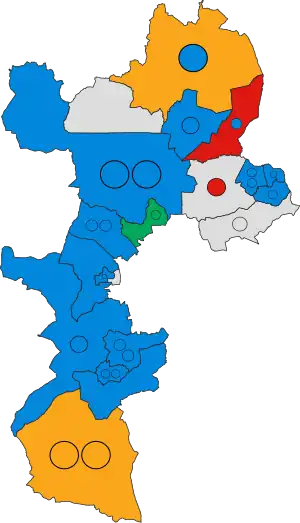 The Conservatives, who have held a majority of the seats on the council since 1976,[6] retained their majority at this election, winning 29 of the 42 seats.[7][8][9]