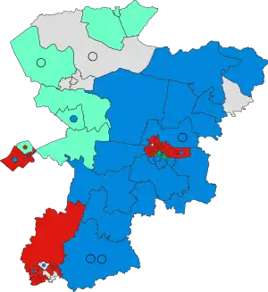 - ↑ Of the 13 independent councillors on the council before the election, 12 formed the "Independent Group", led by Ian Shipp