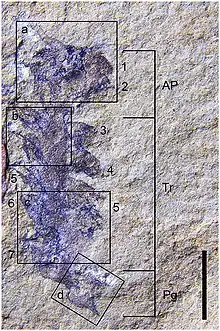 Paleontology or palaeontology is the study of prehistoric life forms on Earth through the examination of plant and animal fossils.[1] This includes the study of body fossils, tracks (ichnites), burrows, cast-off parts, fossilised feces (coprolites), palynomorphs and chemical residues. Because humans have encountered fossils for millennia, paleontology has a long history both before and after becoming formalized as a science. This article records significant discoveries and events related to paleontology that occurred or were published in the year 2023.
