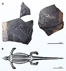 - ↑ Bastiaans, D.; Buffa, V.; Scheyer, T. M. (2023). "To glide or to swim? A reinvestigation of the enigmatic Wapitisaurus problematicus (Reptilia) from the Early Triassic of British Columbia, Canada". Royal Society Open Science. 10 (11). 231171. doi:10.1098/rsos.231171. PMC 10646446.