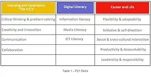 - ↑ P21 Skills Archived 2010-03-06 at the Wayback Machine. Retrieved 2016-03-09