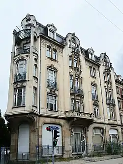The House on 22, Rue du Général de Castelnau is an Art Nouveau building in the Neustadt district of Strasbourg, France. It is classified as a Monument historique by the French Ministry of Culture since 1975.[1] Located at the angle of Rue du Général de Castelnau and Rue du Maréchal Foch, it has a triangular plan and two facades.
