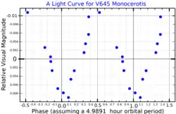 A visual band light curve for V645 Monocerotis, adapted from Stift (1979)[1]