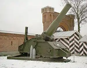 Type 1915 305 mm howitzer (Russian: 305-мм гаубица образца 1915 года) was a Russian heavy howitzer that saw service during World War I and II. Originally intended for Naval use, it was later purchased by the Army at a cost of 271,500 Rubles per piece, with the first order of 8 being sent on 13 August 1915.