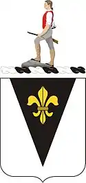 • Symbolism: White is the old Infantry color; the black pile is the background of the shoulder sleeve insignia of the 83d Division and the gold fleur-de-lis indicates the organization’s service in France. The motto translates to "We Guard."