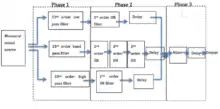 A DSP-based implementation of a realtime 3D sound localization approach with the use of an embedded DSP can reduce the computational complexity As shown in the figure, the implementation procedure of this realtime algorithm is divided into three phases, (i) Frequency Division, (ii) Sound Localization, and (iii) Mixing. In the case of 3D sound localization for a monaural sound source, the audio input data are divided into two: left and right channels and the audio input data in time series are processed one after another.[22]