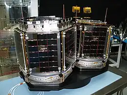 A pair of spacecraft, Ralphie and Sparkie, was developed by the University of Colorado at Boulder and Arizona State University as part of the Air Force Research Laboratory's University Nanosat Program.[3] A third satellite, Petey, developed by New Mexico State University was originally also part of the 3CS.