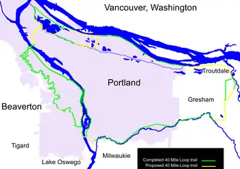 The 40-Mile Loop is a partially completed greenway trail around and through Portland in the U.S. state of Oregon. It was proposed in 1903 by the Olmsted Brothers architecture firm as part of the development of Forest Park.[1][2] One greenway expert calls it "one of the most creative and resourceful greenway projects in the country."[3]