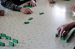 42, also known as Texas 42, is a trick-taking game played with a standard set of double six dominoes. 42 is often referred to as the "state game of Texas".[1] Tournaments are held in many towns,[1] and the State Championship tournament is held annually in Hallettsville, Texas on the first Saturday of March each year.[2] In 2011 it was designated the official State Domino Game of Texas.[3]