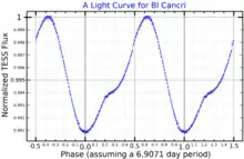 A light curve for BI Cancri, plotted from TESS data[11]