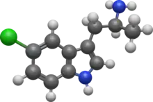 5-Chloro-α-methyltryptamine (5-Chloro-αMT), also known as PAL-542, is a tryptamine derivative related to α-methyltryptamine (αMT) and one of only a few known specific serotonin-dopamine releasing agents (SDRAs).[1][2] It has been investigated in animals as a potential treatment for cocaine dependence.[2] The EC50 values of 5-chloro-αMT in evoking the in vitro release of serotonin (5-HT), dopamine (DA), and norepinephrine (NE) in rat synaptosomes were reported as 16 nM, 54 nM, and 3434 nM, with an NE/DA ratio of 63.6 and a DA/5-HT ratio of 3.38, indicating that it is a highly specific and well-balanced SDRA.[2] However, 5-chloro-αMT has also been found to act as a potent full agonist of the 5-HT2A receptor, with an EC50 value of 6.27 nM and an efficacy of 105%, and almost assuredly acts as a potent agonist of other serotonin receptors as well.[1]