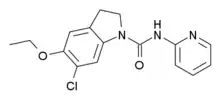 6-Chloro-5-ethoxy-N-(pyridin-2-yl)indoline-1-carboxamide (CEPC) is a drug which acts as a potent and selective antagonist for the serotonin 5-HT2C receptor. In animal studies it was found to potentiate the conditioned place preference induced by low-dose amphetamine, demonstrating that 5-HT2C-mediated disinhibition of dopamine release can cause interactions with dopaminergic drugs.[1]