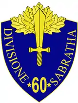 The 60th Infantry Division "Sabratha" (Italian: 60ª Divisione di fanteria "Sabratha") was an infantry division of the Royal Italian Army during World War II. The Sabratha was raised in May 1937, in Gharyan in Italian Libya and named after the nearby ancient Roman city of Sabratha. The division's regimental depots were in mainland Italy in Campania and shared with the 25th Infantry Division "Bologna", with both divisions recruiting their troops from and training them there. The division was destroyed on 25 July 1942 during the First Battle of El Alamein in Egypt and its remnants used to fill up the depleted ranks of the 102nd Motorized Division "Trento".[1][2][3][4] The Sabratha was classified as an auto-transportable division, meaning it had some motorized transport, but not enough to move the entire division at once.