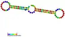 - ↑ Weinberg Z, Barrick JE, Yao Z, et al. (2007). "Identification of 22 candidate structured RNAs in bacteria using the CMfinder comparative genomics pipeline". Nucleic Acids Res. 35 (14): 4809–4819. doi:10.1093/nar/gkm487. PMC 1950547. PMID 17621584.
