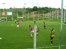 Seven-a-side football is one of the minifootball variations of football,[1][2] which is played among seven players in each team. In the game consists of one goalkeeper and six outfield players. The pitch of seven-a-side football is bigger than that of five-a-side football, ranging from 50-65 yards in length and 25-50 yards in width respectively.[3]