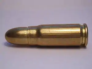 The 7.62×25mm Tokarev cartridge (designated as the 7.62 × 25 Tokarev by the C.I.P.[5]) is a Soviet rimless bottleneck pistol cartridge widely used in former Soviet states and in China, among other countries. The cartridge has since been replaced in most capacities by the 9×18mm Makarov in Russian service.[6]