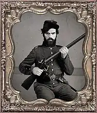 The regiment was issued new Springfield rifle-muskets (possibly the Springfield Model 1861) in late November after being issued smoothbore muskets. The men, recruited as sharpshooters, protested and Governor Olden made a special request to get the best weapon available to men.[4]