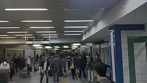 AŞTİ is an underground station and the western terminus of the Ankaray line of the Ankara Metro in Çankaya. It is located on the east side of Mevlana Boulevard, across from the Ankara Intercity Bus Terminal (AŞTİ). AŞTİ station consists of two side platforms and opened on 30 August 1996, together with the Ankaray line.[1] Connection to the bus terminal is available via a passageway underneath Mevlana Boulevard.