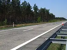Reconstruction of the southern carriageway was originally intended to proceed shortly afterwards, but did not start due to delays caused, in part, by changes in the motorway project required by new environmental protection rules (A18 passes through Natura 2000 protected areas).[6] On 15 July 2010, the environmental decision for the revised project was issued,[7] which would have allowed for the contract bidding procedure to be completed and for construction to start in 2011. However, in December 2010, the Polish government announced significant cutbacks to its funding for road construction, which delayed the project. In 2014, when the National Program of Road Construction for 2014 – 2023 was created, the government did not envisage it starting in the near future.