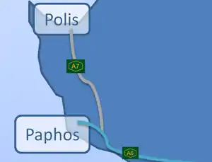 The A7 is a planned Motorway to link the city of Paphos with Polis, a small town in the north west of the island.