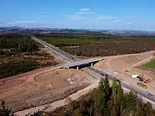 In November 2011, the Scottish Government announced that it would upgrade the entire road from Perth to Inverness to dual carriageway.[19] The design contract was split into three lots with Lot 1 (Glengarry to Dalraddy) awarded to a CH2MHill/Fairhurst joint venture in April 2014.[20] Lot 2 (Pass of Birnam to Glengarry) was awarded to Jacobs in August 2014[21] and Lot 3 was awarded to an Atkins/Mouchel joint venture in December 2014.[22] Award of the construction contract for a preliminary section (outwith Lots 1 to 3) of the £3 billion project was awarded in June 2015,[23] and work began on the 5 mi (8 km) section between Kincraig and Dalraddy (just south of Aviemore) in September 2015. After a slight delay, this section was opened to traffic on 30 September 2017.[24] The full scheme was originally scheduled for completion in 2025,[25][26][27] but in December 2023 this deadline was postponed by a decade to late 2035.[28]