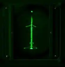 Each pair of antennas was connected to a motorized switch that rapidly switched between the pairs, a technique known as lobe switching.[51] Both signals were then sent to a cathode ray tube (CRT) for display, with one of them passing through a voltage inverter. If the target was to the left, the display would show a longer blip on the left than the right. When the target was dead ahead, the blips would be equal length.[52] There was an inherently limited accuracy to such a solution, about five degrees but it was a practical solution in terms of limiting the antenna sizes.[50]