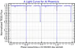 - ↑ Maxted, P F L; Gaulme, Patrick; Graczyk, D; Hełminiak, K G; Johnston, C; Orosz, Jerome A; Prša, Andrej; Southworth, John; Torres, Guillermo; Davies, Guy R; Ball, Warrick; Chaplin, William J (11 October 2020). "The TESS light curve of AI Phoenicis". Monthly Notices of the Royal Astronomical Society. 498 (1): 332–343. arXiv:2003.09295. doi:10.1093/mnras/staa1662.