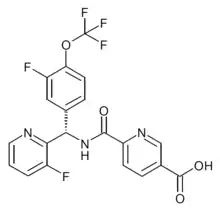 • C1=CC(=C(N=C1)[C@H](C2=CC(=C(C=C2)OC(F)(F)F)F)NC(=O)C3=NC=C(C=C3)C(=O)O)F