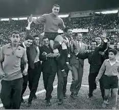In the same period, at the beginning of the sixties, Al-Asaker also took control of the Moroccan Super Cup winning it in four out of six times.[10] Then the Royal Army, led by its French coach Clezo, began to dominate the league competition by winning four titles, and the team’s first meeting with the championship title was in the 1960-61 season, and control of the championship title continued for four consecutive seasons until 1964 as a new record.[11][12][13][14]