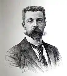 The remainder are either sitting parallel to the back wall, or on the side of the lecture theatre immediately opposite the windows. The remaining thirteen individuals are (from left to right): Théodule-Armand Ribot (1839–1916), psychologist; Georges Guinon (1859–1932), neuropsychiatrist, and one of Charcot's last chief residents;[10] Albert Londe (1858–1917), medical photographer, and chronophotographer (wearing an apron); Léon Grujon Le Bas (1834–1907),[11] chief hospital administrator at Salpêtrière; Albert Gombault (1844–1904), neurologist and anatomist; Paul Arène (1843–1896), novelist; Jules Claretie (1840–1913), journalist and literary figure; Alfred Joseph Naquet (1834–1916), physician, chemist, and politician; Désiré-Magloire Bourneville (1840–1909), neurologist and politician; Henry Berbez (with pen and notebook), younger brother of Paul-Adrien Berbez (who is sitting opposite at the table); Henri Parinaud (1844–1905), ophthalmologist and neurologist; Romain Vigouroux (1831–1911), chief of electrodiagnostics, discoverer of the electrical activity of the skin (in the skull-cap);[12] and, finally, in the apron, Georges Gilles de la Tourette (1857–1904), neurologist and physician.