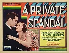 A Private Scandal is a 1931 American crime drama film directed by Charles Hutchison and starring Marian Nixon, Lloyd Hughes and Theodore von Eltz.[1] [2] It was distributed by the independent Headline Pictures.
