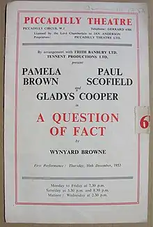 A Question of Fact is a 1953 play by the British writer Wynyard Browne. A schoolteacher questions his beliefs and his career when he discovers that his father was hanged for murder.