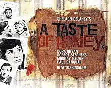A Taste of Honey is a 1961 British drama film directed by Tony Richardson and starring Rita Tushingham, Dora Bryan, Robert Stephens and Murray Melvin.[6] It is an adaptation of the 1958 play of the same name by Shelagh Delaney. Delaney wrote the screenplay with Richardson, who directed the original Broadway production of the play in 1960. The film is an exemplar of a gritty genre of British film that has come to be called kitchen sink realism.