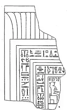 Although the tomb was robbed in antiquity, archaeologists found her sarcophagus, a false door and an offering table[1] along with a few pieces of burial equipment, such as seven alabaster bowls in the form of ducks, two mace heads, pieces of jewelry and one of the canopic jars. Among the burial items of the other queen buried in the adjoining chamber were obsidian and alabaster bowls, granite and alabaster mace heads and some jewels, along with the pieces of a small stone shrine. Aat was about 35 years old at her death, the other queen was about 25. Their bones were found.[2]