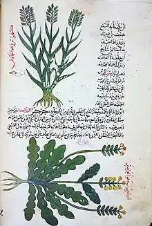 Abū Jaʿfar al-Ghāfiqī (uncertain birth and death dates),[1] was an 11th-century Andalusian Arab botanist, pharmacologist, physician and scholar from Ghafiq near Cordoba in the southern Iberian peninsula called al-Andalus, a region of mixed cultures, religions, and languages. In modern literature, he is commonly mistakenly identified as a 12th-century scholar who died around 1165. Nonetheless, the oldest copy of his only known work is dated 1111, implying that he lived at least part of his life in the 11th century.[2] He was responsible for the collating and creating of 'Kitāb fī l-adwiya al-mufrada' (“Book of simple drugs”), a remarkable compendium of some 400 hand-drawn and coloured images of plants and animals, popularly known as the “Herbal of al-Ghafiqi". The Herbal draws on ancient Greek sources like Dioscorides and Galen and more than thirty other works from India and the Hellenistic and Islamic worlds.[3][4]