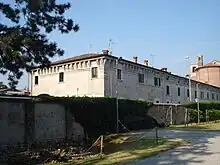 In the 10th century, marked by the repeated incursions of the Hungarians into Italy, the monks of Leno ensured that the area around the abbey was fortified with palisades and towers and girdled the curtis of Gottolengo.[19] In 938 the monastery's possessions were further expanded with the inclusion of Gambara.[20] Twenty years later, with the diplomas of Berengar II and Adalbert II, the vast Benedictine possessions ranged from the province of Verona to the Comacchio Valleys and from the Modena area to the Brescian area.[21] The list of possessions also included curtis Bonzaga, today's Gonzaga in the province of Mantua.[22]