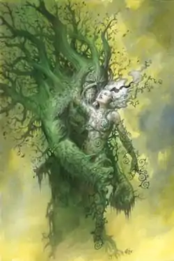 ![]() Abby Holland with husband Swamp Thing. Textless cover of Swamp Thing #22 (February 2006). Art by Eric Powell | |