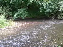 The headwaters that are currently the upper part of the Mindersdorfer Aach were originally the headwaters of the Ablach. The Stockacher Aach had a favourable gradient[5] for use in a hydropower plant and to drive several sawmills and a forge. However the Stockacher Aach does not naturally carry enough water to drive all of these, which is why as early as 1699, a canal was dug across the European Watershed to divert the water of the upper Ablach into the Mindersdorfer Aach. A canal of only 100 metres (330 ft) across the Schwackenreute Plateau was all that it took to accomplish this. This effectively moved the European watershed, annexing the upper Ablach into the catchment area of the Rhine. Strictly speaking, the weir at the start of the canal creates an artificial bifurcation: most of the water is diverted via the Stockacher Aach to Lake Constance, but in times of heavy rainfall, the excess water follows the original course of the Ablach to the Danube.[2]