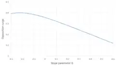 Relationship between the slope parameter and the opposition surge. Larger values of correspond to a less pronounced opposition effect. For most asteroids, a value of is assumed, corresponding to an opposition surge of .