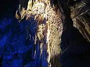 Abukuma-do (あぶくま洞 - Abukuma Cave) is a limestone cave located in Fukushima Prefecture, Japan. The cave was discovered on August 15, 1969, northeast of the city of Tamura and was originally named Kamayama Shonyu-do (釜山鍾乳洞). It was designated a natural heritage of the town on February 7, 1971, and renamed Abukuma-do on June 1, 1973.[1] Visitors can traverse a 600-metre-long path inside the cave as well as a 120-metre-long exploration course to view the stalactites and stalagmites. Each stalactite has taken more than eighty million years to form.[2] Beyond the public areas lie about 2,500 metres of cave that are not open to the public. Nearby Abukuma Cave is the smaller Irimizu Shonyu-do (入水鍾乳洞 - Irimizu Limestone Cave), discovered in 1927. Irimizu Limestone Cave was designated a National Natural Treasure on December 28, 1934.[3] The temperature inside Abukuma-do is approximately 15 °C and the humidity is above 90%.