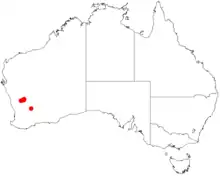 It is found in a small area between Perenjori, Westonia and Yalgoo where it grows in skeletal rocky soils over ironstone on hillslopes.[1] It is mostly found in the Mount Gibson Sanctuary and on Ninghan Station. The type specimen was collected by the botanist Charles Austin Gardner in 1952 from the Mount Gibson area.[2]