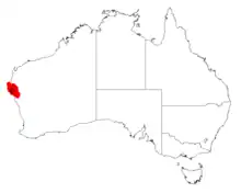 It is native to an area in the Mid West and Gascoyne regions of Western Australia where it is commonly situated on low rises, undulating plains and coastal areas growing in sandy or loamy soils often over or around limestone.[1] The range of the plant extends from the area around Shark Bay from around Wooramel Station in the north down to around Nerren Nerren Station in the south, it is also found off-shore from the mainland on Dorre Island and Dirk Hartog Island as a part of shrubland and low woodland communities.[2]