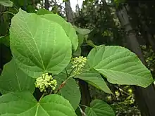 Deciduous trees or large shrubs, small to medium height (5–10 m tall), yellow-gray branches that are rather densely branched. Leaves are undivided, deeply cordate, margins crenate, ovate, not lobed, 10–15 cm long and 5–8 cm wide, gray-green. Undersides pale green, shining and glabrous, pinkish gray when young. The fall color is yellow. Flowers are sepals hairy; discs lobed; stamens inserted between the lobes.[6]