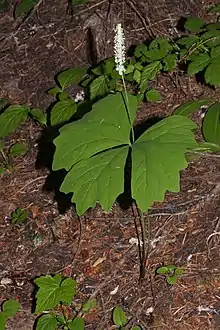The plants are spaced widely on the rhizomes, but often overlap in large networks that result in carpets of Achlys that dominate the near-surface understory. Achlys seems to prefer moist soil, so at middle to higher elevations it is easier to find them along streambanks or well-shaded ravines.[4]