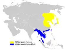 It breeds from eastern Mongolia and south-eastern Russia to eastern China and Japan,[2] and winters in Southeast Asia.