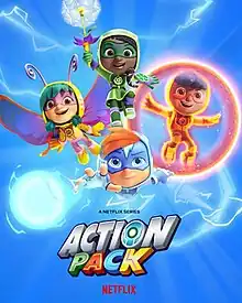 Action Pack[2] is an animated preschool children's streaming television series developed by Shea Fontana for Netflix. Created by William Harper, the series premiered on January 4, 2022.[3] A second and final season was released on June 6, 2022.[4] A special, titled The Action Pack Saves Christmas, was released on November 28, 2022.