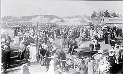 Development continued throughout the 19th century: the city's sale yards opened in 1874 and the railway workshops were moved to Addington in 1880. By the time the show grounds were opened in 1887, Addington had become an important suburb in the industrial and social life of Christchurch.[3] In 1874 the Addington Prison was built in Lincoln Road; it closed in 1999 and the Mountfort cell block and remaining perimeter walls are a Heritage New Zealand Historic Place Category 2.[4]