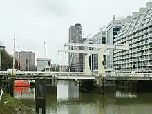 The Admiraliteitsbrug is a drawbridge over the Buizengat in Rotterdam. The bridge is located on Willem Ruyslaan and connects Oostzeedijk to the Maasboulevard. The bridge has a passage width of 9.20 m (30.2 ft) and a vertical clearance of 2.75 m (9 ft 0 in).