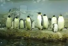 Eight species of penguins are exhibited (emperor penguins, king penguins, gentoo penguins, Adélie penguins, chinstrap penguins, rockhopper penguins, cape penguins, and fairy penguins). Approximately 470 birds have been bred, which is one of the largest amounts in the world. In particular, the breeding of emperor penguins has been successful.[12][13]